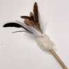 Tato hračka obsahuje pevnou dřevěnou tyč a králičí a kohoutí peří, což zajišťuje maximální bezpečnost a odolnost.